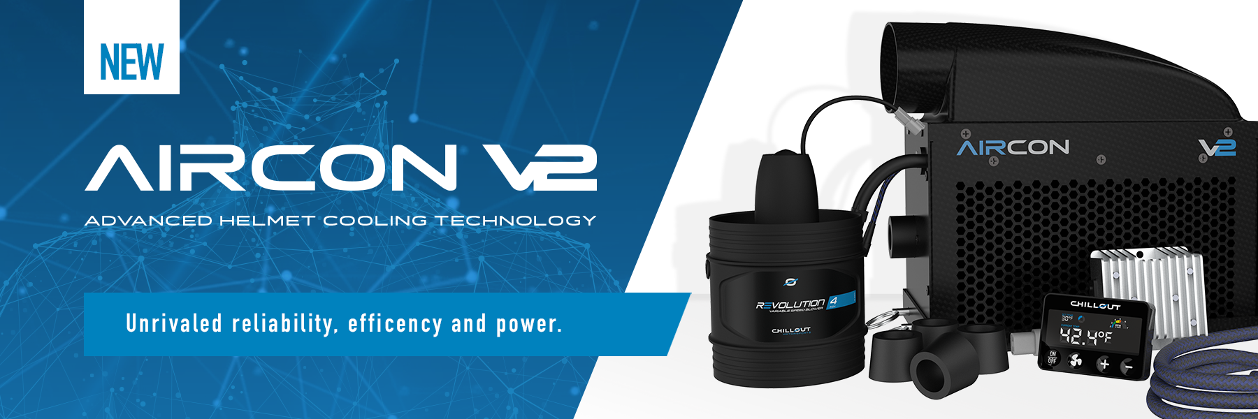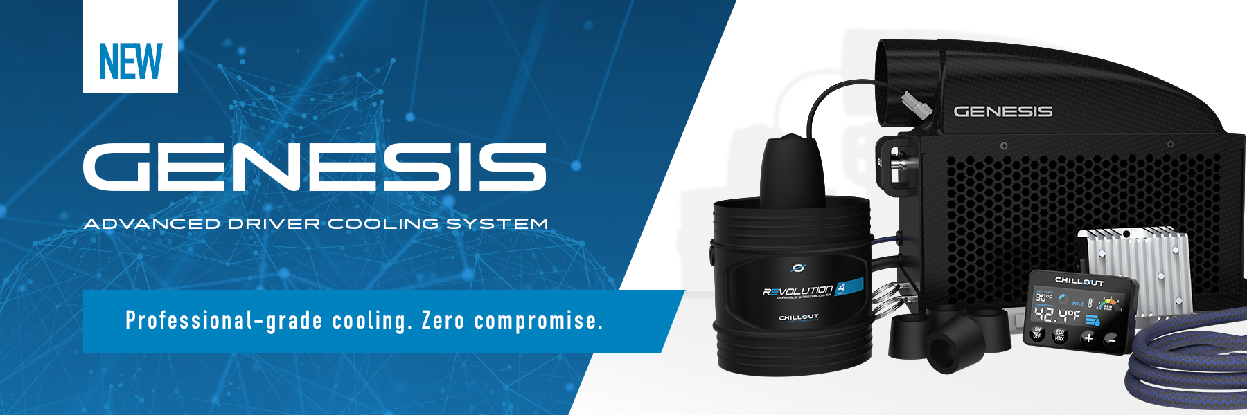 The Cypher Pro is our lightest driver cooling system, built with a full carbon fiber housing and carbon fiber baseplate for maximum strength at minimum weight. Weighing just 4.7 lbs, it delivers professional-grade Chillout performance in tight cabins and weight-critical race applications where every ounce matters.